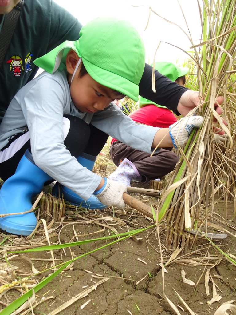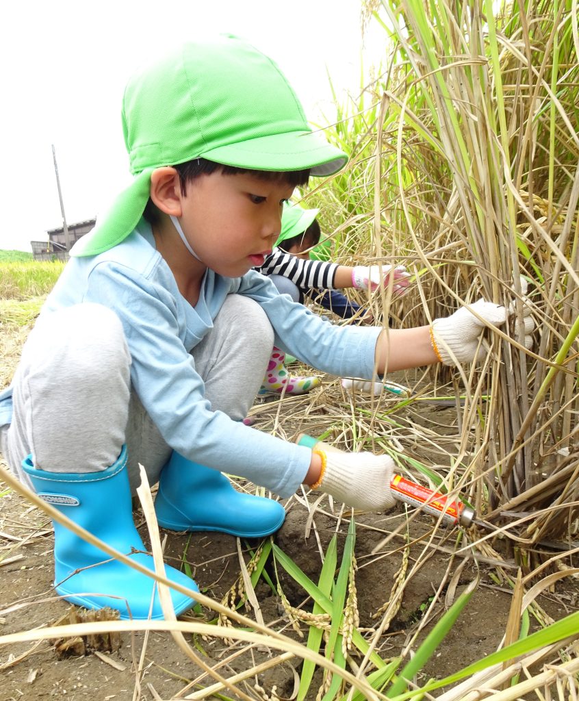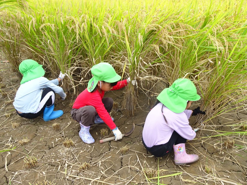 10月10日(金)に、年長組さんが稲刈りに行きました☆